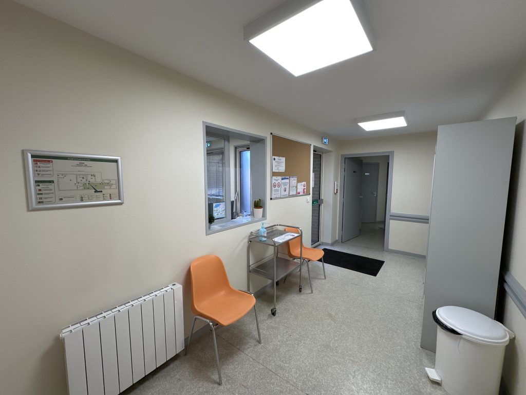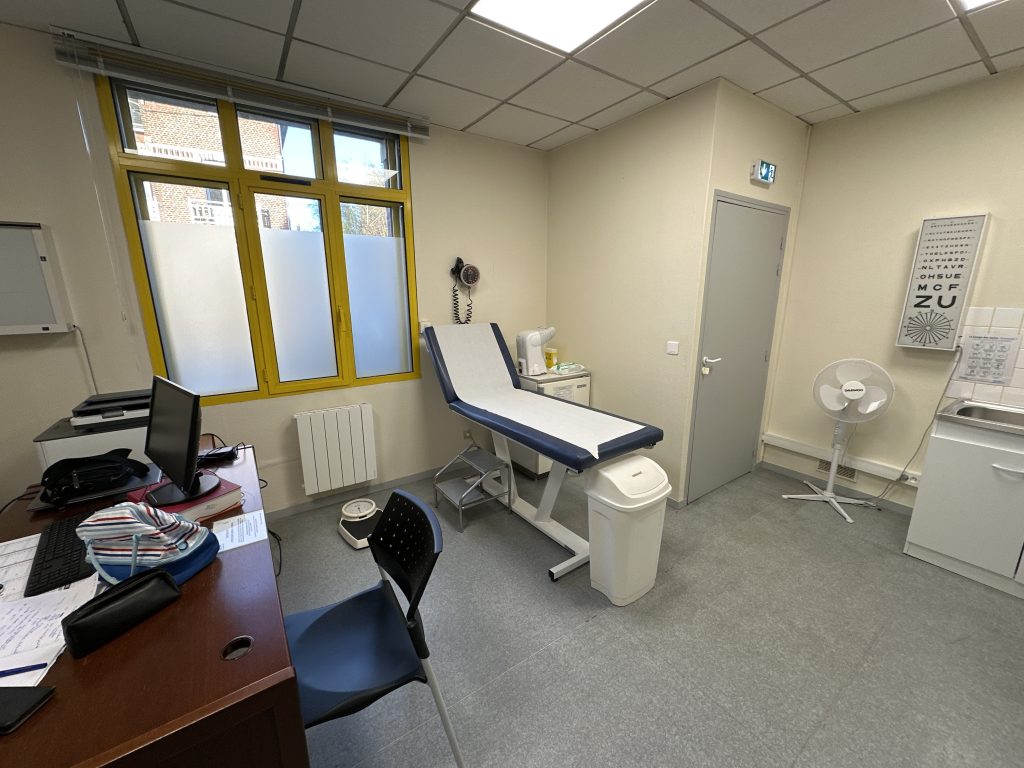 Au rez-de-chaussée: cabinet médical, salle d’examens, secrétariat, salle d’attente, zone couloir et WC